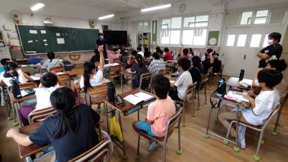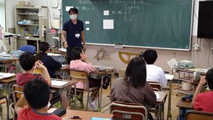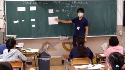 大きさは違うけれど同じ形を見つけています。縦と横の長さを比として考える問題です。小さい方から大きい形を見ると何倍か、大きい方から小さい方を見ると何分の1になるかで形が同じかどうかを確認しています。