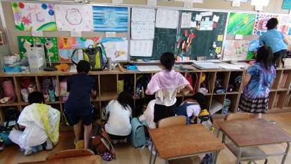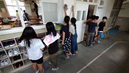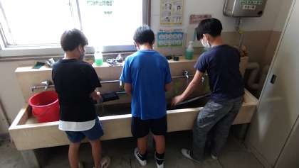 1学期分の大掃除をしています。自分の机やロッカー、くつ箱を中心にきれいにしています。エアコンのフィルターを水洗いしてきれいにしてくれている児童もいます。