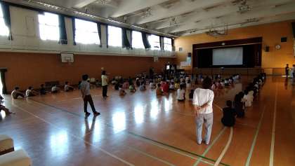 本日より2学期が始まりました。体育館で始業式をおこないました。