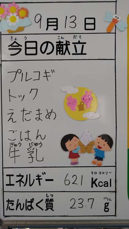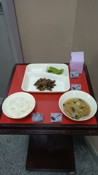 今日の給食は韓国メニューでした。プルコギ・トックがメインのおかずで、プルコギはご飯にのせて丼ぶりにしてもおいしく食べられました。
