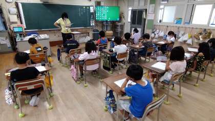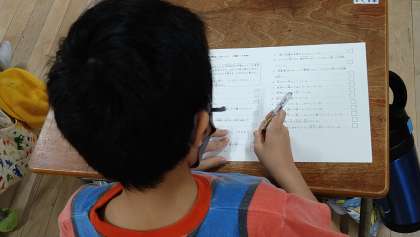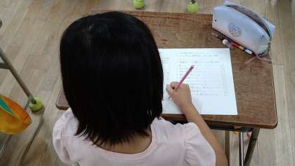 東小橋小学校での学校生活を振り返りアンケートに答えています。「学校が楽しい。」「勉強をがんばっている。」など全部で20の項目に答えています。