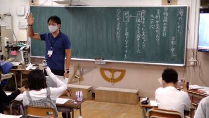 立松和平さんの「海のいのち」の学習をしています。物語の変容について考えています。中心的な登場人物「太一」の心の変容を取りあげて意見の交流をしています。