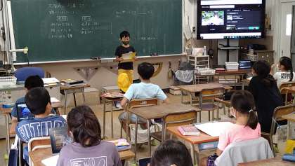 「大阪府の行事・文化財を調べて報告しよう」ということで一人ひとりが調べたことを発表しています。岸和田のだんじりや天神祭、堺の包丁、なにわ伝統野菜、愛染まつりなどたくさん発表しています。