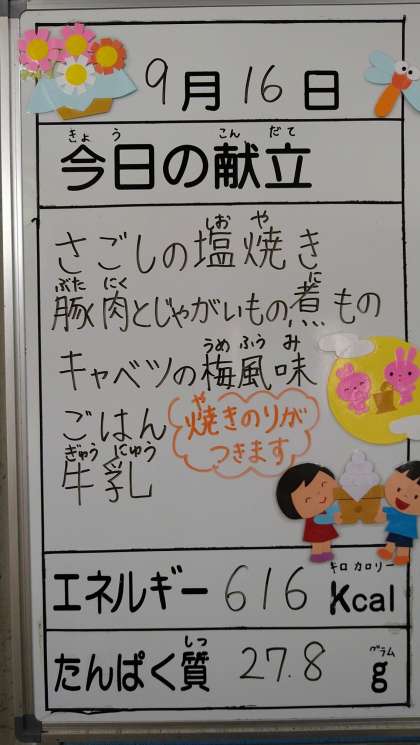 今日は大おかずに豚肉、小おかずにサゴシと肉と魚が献立されたメニューとなっています。