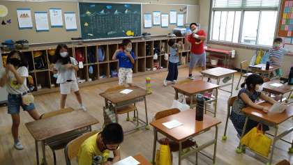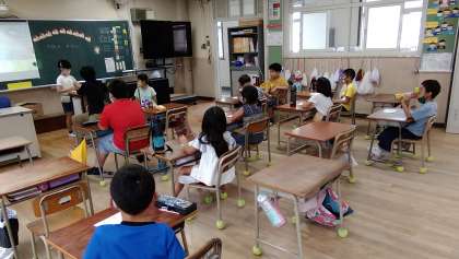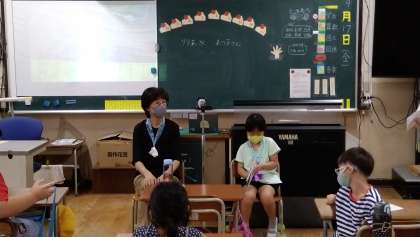 8月が誕生日月の人は2名です。その1人は、担任の先生です。子どもたちから先生のよいところを歌にしたプレゼントがありました。先生も喜んでいました。