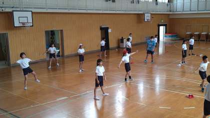 先週に引き続き体育館でソーラン節の練習に取り組んでいます。今はまだ全体の流れを中心に練習を積み重ねています。