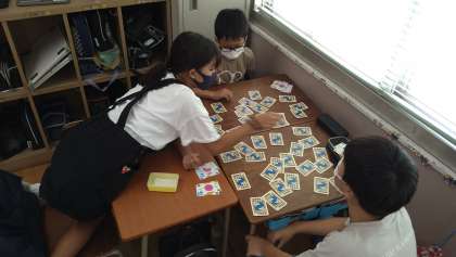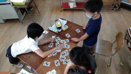 次の分数の単元に入る前に分数への苦手意識を取り除くためにおこないました。七並べや神経衰弱を分数のきまりを使ったルールで楽しみました。