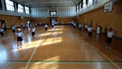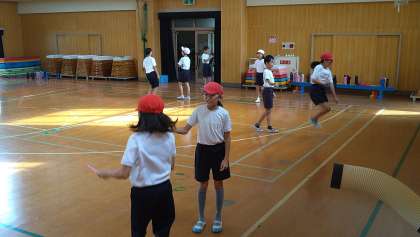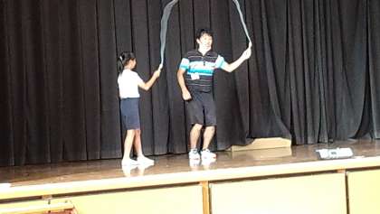 今日は、1人跳びと2人跳びの練習をしています。2人で息を合わせて跳ぶのはまだ難しそうですが、がんばって練習しています。