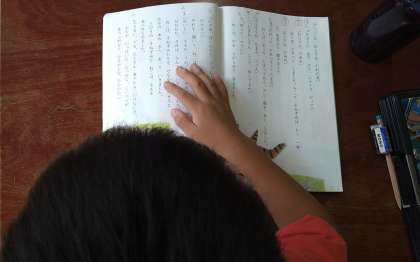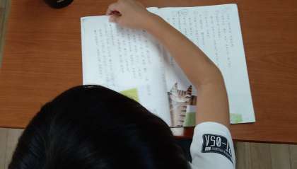 会話文ごとにどのネコの会話かを文脈から読み取って確認しています。読み取る前には、今日の学習の範囲をしっかり読んでいます。