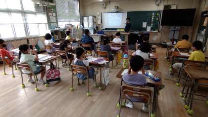 2とび・5とびの数字の並び方や皿にのっているドーナツをひとまとまりとして数えるやり方を確認しています。