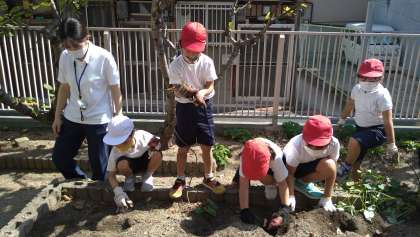 春に植えたサツマイモの収穫をしています。