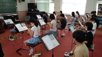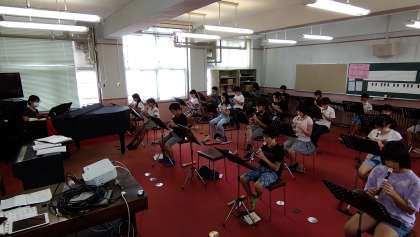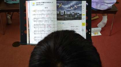 上下のパートに分かれて、リコーダーや歌唱の練習をしています。きれいな頭声発声の練習をしながら、歌唱につなげています。