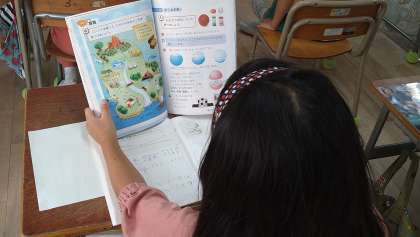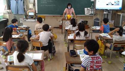 ドッジボールを使って、ボールの直径が何cmになるかを調べています。