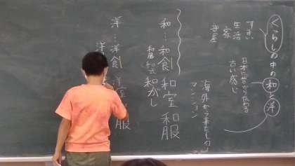 これから始まる「くらしの中の和と洋」という単元の学習に入る前に「和と洋」について身の回りのことからわかることをどんどん発表しています。