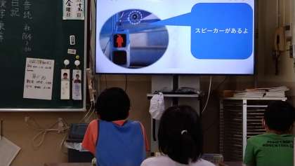 どのようなテーマで発表するかを映像を見てイメージしています。さまざまな学習を通して学んだことを振り返りテーマを決めます。
