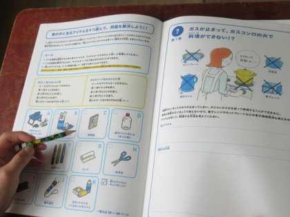 授業の後半では、ライフラインが止まった時に「家の中にあるもので乗り切るためにどんな方法があるか」をみんなで考えました。