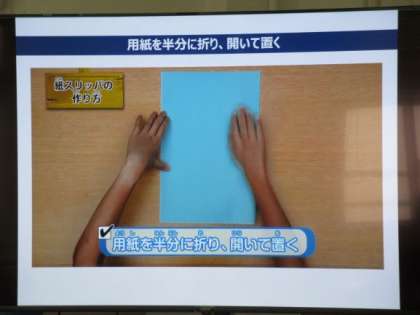 学んだことはおうちの人に伝えました。おうちの方からは「災害時の持ち出し袋を今度一緒に点検します。」「チラシでスリッパを作る方法を教えてもらいました。」「親子教室みたいなものもあればいいな」などの感想が寄せられ家族で考えていただく機会になりました。