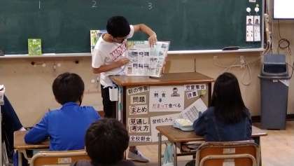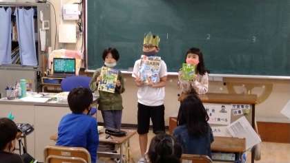 3名の子どもたちが本の紹介をしました。1番興味が掻き立てられた本を決めます。今回は、鉄道の図鑑が選ばれました。