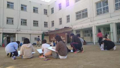 校舎の絵をかいています。