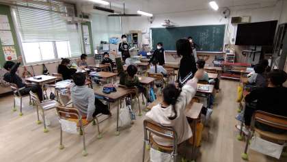 どんな出し物をするかを決めています。時間が足りなくなったらこうすると司会者が主導して進めています。
