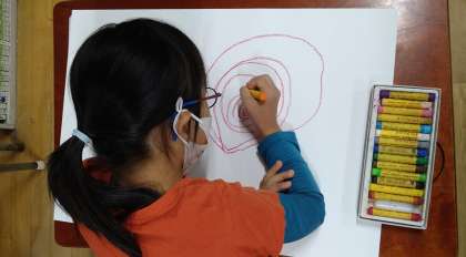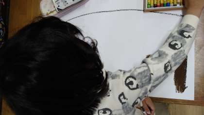 先週金曜日に2年生と一緒に行った遠足の思い出を絵にかいています。