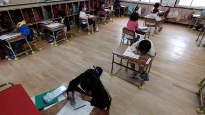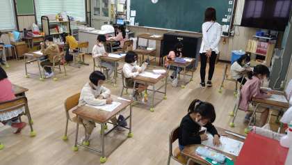 後半は、たし算(繰り上がりのあるたし算)のテストをおこないました。集中して取り組んでいます。