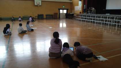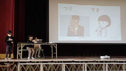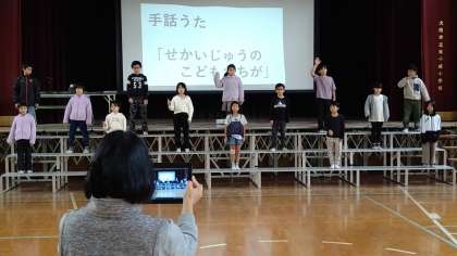 グループごとの発表の後、みんなで手話付きで歌を歌います。グループごとの発表はパワーポイントを使っておこないます。