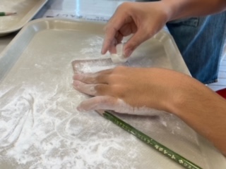 勾玉の作り方の説明を受けてから作業を始めました。