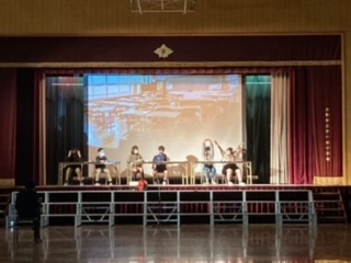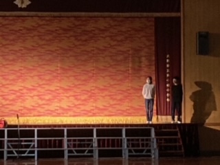 講堂で学習発表会の練習です。一つ一つのセリフを聞こえやすいように確認しながら仕上げの段階に入っています。