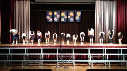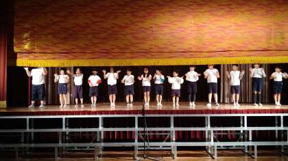声の大きさ、身振り手振りなどをつけて一人ひとりがんばっています。最後はみんなで合唱練習をしています。