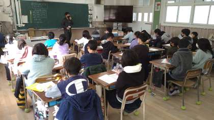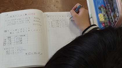 今回は、走った時間と走った道のりがわかっている3つの車を速い順に並べるという問題です。これまでに学習した方法を使って課題解決に取り組んでいます。