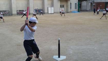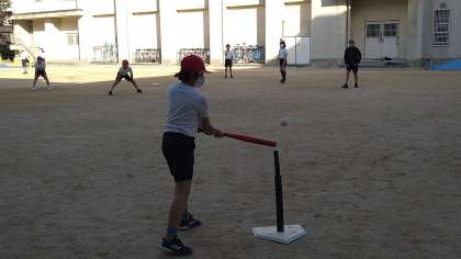 ベースボール型のボール運動「ティーボール」の学習です。