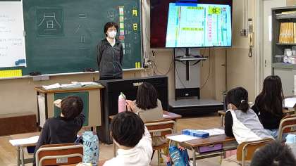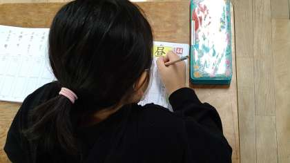 今日は「昼」という漢字を学習しています。漢字ドリルの「東西南北」「春夏秋冬」なども併せて練習しています。