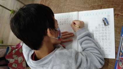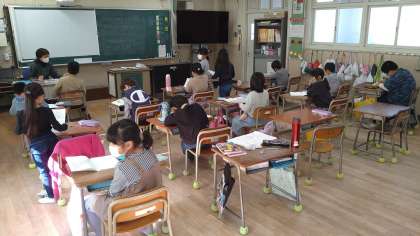 今日は順番に暗唱する練習です。早く終わった児童は、問題作りをしています。次の算数の時間には、順番にすらすら暗唱する「じゅんすら」に挑戦します。