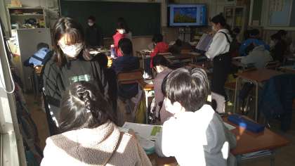 教室では個人の文集作成、パソコンルームでは文集委員がプロフィール・アンケート・ランキングを作成しています。