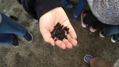 学習園でアサガオの種をとっています。