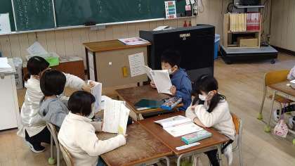 「気もちをこめて音どくしよう」をめあて学習しています。グループに分かれて、自分の読みたい場面を決めて、大きな声で気持ちを込めて読んでいます。