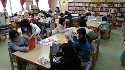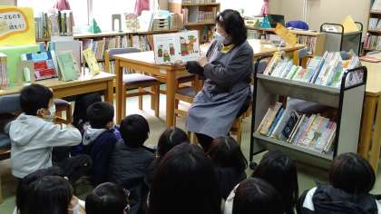 絵本や図鑑、難しい漢字が使われている専門書など、さまざまなジャンルの本を読んだり、見たりしています。最後の15分くらいは、学校図書館司書の須田先生による読み聞かせをおこなっています。