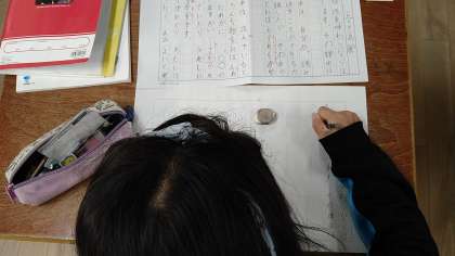 いくつかのテーマの中から1つ選び、自分の考えを原稿用紙1〜2枚で書いています。書き終わったら、読み合う予定です。