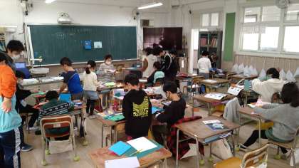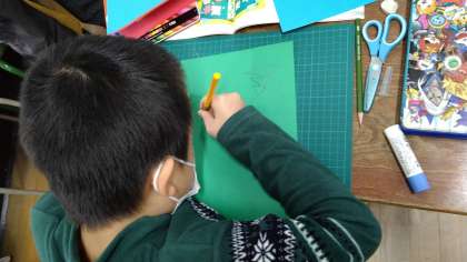 渡したい人にむけて作っています。たくさん作った児童は2時間で5つ作っています。まだまだ作りたいようで「色画用紙がほしい。」と言っている児童もいます。