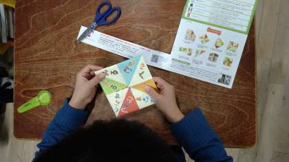 これは、3年にのみ送られてきたものとなります。折り紙のように指示されたとおりに折っていくと「パクパク」が完成します。