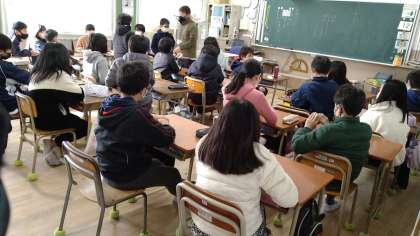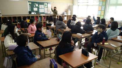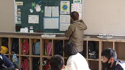 これまでは席替えと連動していたそうですが、やっていない当番があるということで別の方法で決めています。子どもたちからトランプを使った方法が提案されました。1から6までの全ての絵柄(4種類)の24枚を順番に引くというくじ引きがおこなわれています。
