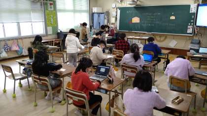 今年のめあてをえんぴつで下書きした後、マイネームで清書しています。