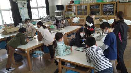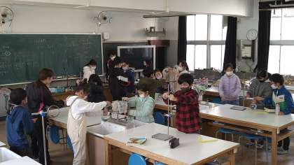 水を温める実験ですが、昔はアルコールランプで水を温めていました。少し前から安全面からコンロで温めるようになっています。今回は3分ごとの温度の変化を調べています。
