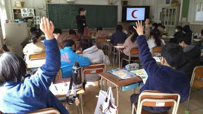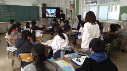 地図帳にはたくさんの国々の国旗が載せられています。その国旗のデザインや色が決まった経緯や同じようなデザインがあることについて学習しています。