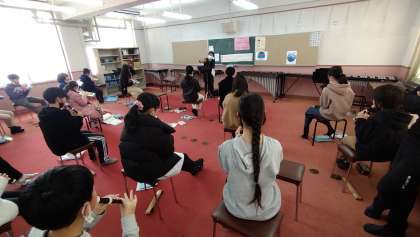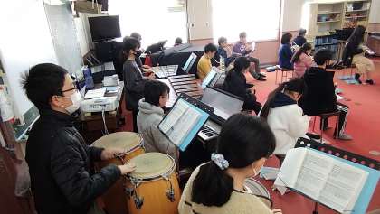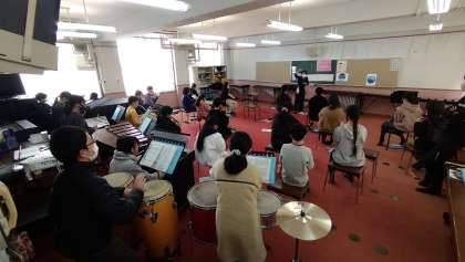 曲名は「アフリカンシンフォニー」です。3月7日の卒業お祝い集会にむけた練習です。本番まであと2週間ですので、一生懸命練習に取り組んでいます。