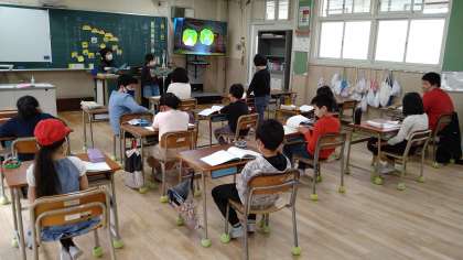 最後は担任の詩を発表しています。子どもたちはその詩を聞き、その内容を説明しています。子どもたちは静かにそして真剣に耳を傾けています。