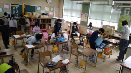 タブレット端末のデータの処理をした後、それぞれの持ち物の整理整頓をしています。