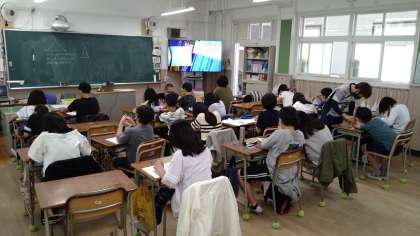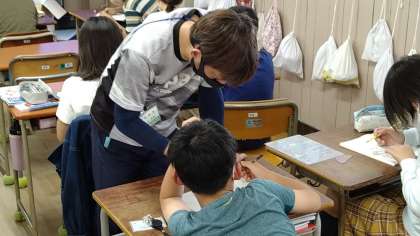 今日は線対称について学習しています。線対称である三角形とはどのような要素をもっているのかを考えています。2つの辺の長さが同じになることや頂点から向かいにある辺に垂線をおろすことなどの考えを発表しています。