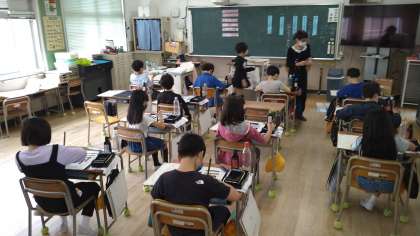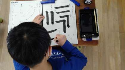 3年から始まった毛筆ですが、さすがに慣れた感じて取り組んでいます。「とめ・はね・はらい」や線の太さに気をつけながら練習しています。